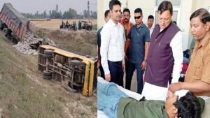 सीएम धामी की जनसभा में जा रही बस की ट्रक से टक्कर, 22 बच्चे घायल…धामी पहुंचे अस्पताल जाना सभी का हालचाल।