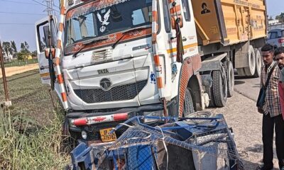 हाईवे पर कंटेनर ने ट्रैक्टर बोगी को टक्कर मारी, 1 की मौत, 1 घायल