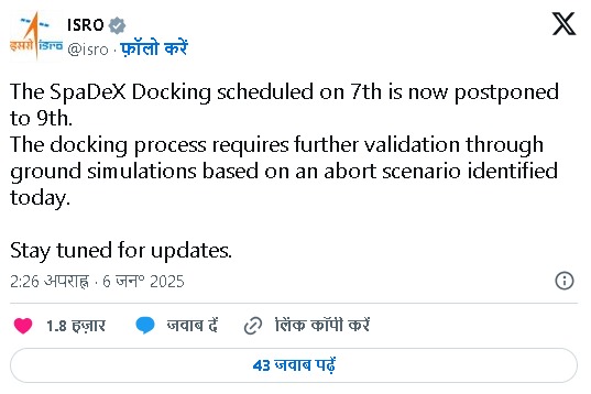 SpaDeX मिशन के डॉकिंग में आई तकनीकी समस्या, ISRO ने आगे बढाई डॉकिंग डेट….