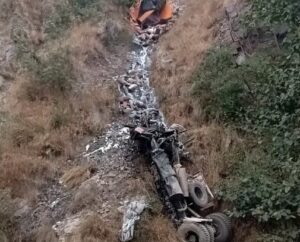 चावल से भरा ट्रक देवप्रयाग के पास खाई में गिर, चालक की मौत।