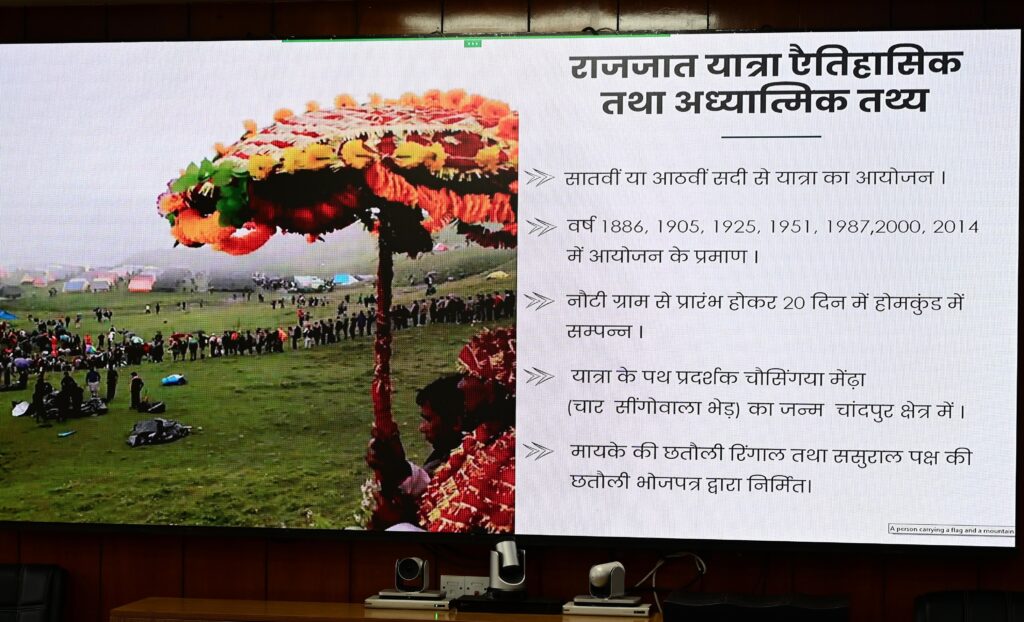प्रवासी उत्तराखंडी भाई-बहनों और ट्रैकर्स को भी यात्रा से जोड़ने, विशेष टूर पैकेज तैयार कर व्यापक प्रचार-प्रसार करने के भी अधिकारियों को निर्देश दिए जिससे अधिक संख्या में श्रद्धालु इस आस्था यात्रा का हिस्सा बन सकें। नंदा देवी राजजात यात्रा केवल एक धार्मिक यात्रा नहीं, बल्कि हमारी आस्था, सांस्कृतिक गौरव और जनमानस की श्रद्धा का दिव्य संगम है। हमारी सरकार इस ऐतिहासिक और आध्यात्मिक यात्रा की भव्यता, सुरक्षा और सुचारु संचालन के लिए पूरी तरह प्रतिबद्ध है।