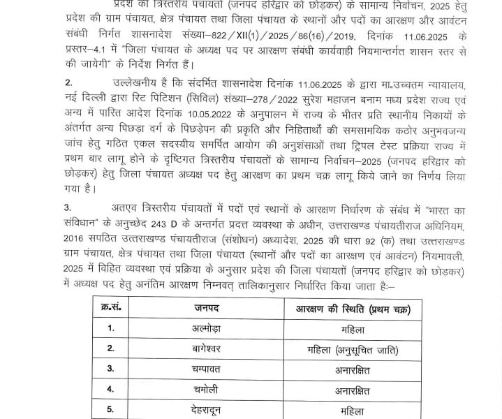 देहरादून। जिला पंचायत अध्यक्ष पद को लेकर बड़ी अपडेट सामने आई है। प्रशासन की ओर से आरक्षण की अंतिम सूची जारी कर दी गई है। अगर...