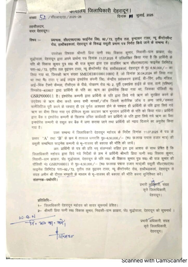 देहरादून – जिला प्रशासन इन दिनों जनहित से जुड़े विषयों पर सख्त रूख अपनाए हुए हैं, जहां जनहित में निरंतर कड़े निर्णय लिए जा रहें हैं वही आदेशों की अहवेलना पर सख्त कार्यवाही भी की जा रही है। ऐसा ही एक अन्य प्रकरण बैंक ऋण से सम्बन्धित व्यथित प्रिया का है जहां आदेशों की ना फरमानी पर एक और बैंक डीएम के कोप भाजन बना है। जिस पर कड़ी कार्रवाई करते हुए जिला प्रशासन ने बैंक शाखा को सील करते हुए ताला जड़ दिया है। विगत 11 जुलाई 2025 को जिलाधिकारी के समक्ष आर्थिक तंगी से जूझ रही 4 छोटे बच्चां की मॉ विधवा प्रिया ने गुहार लगाई थी कि पति की मृत्यु के उपरान्त बैंक एक वर्ष से बीमित ऋण का न तो क्लेम दे रहा है तथा सम्पति के कागज भी जब्त किए गए हैं।उन्होंने डीएम से गुहार लगाते हुए का कि उनके पति स्व0 विकास कुमार द्वारा 6.50 लाख का बैंक से ऋण लिया था तथा बैंक के अनुरोध पर ऋण का भी बीमा भी करवाया था। बीमा कम्पनी द्वारा ऋण का बीमा करते समय सभी मानकों /जांच जिसमें शारीरिक तथा अन्य समस्त जांच की औपचारिकताएं पूर्ण करते हुए ऋण का बीमा किया गया तथा प्रीमियम शुल्क काटते हुए ऋण भुगतान उनके पति को किया गया।